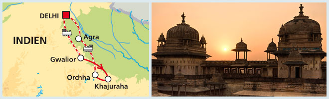 Delhi, Gwalior, Khajuraho, Orchha, Agra